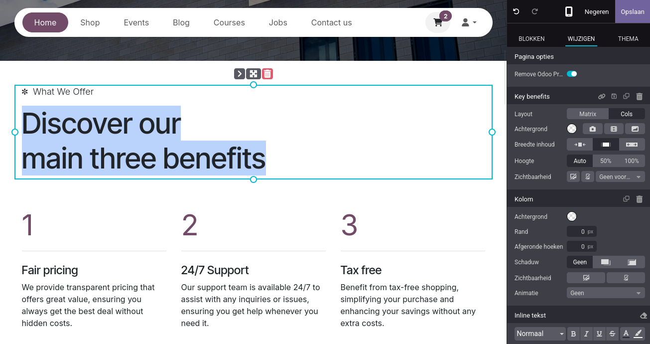 Nee. Je kunt klein beginnen met alleen offertes en facturen. De rest – website, voorraad, projecten, HR – staat klaar voor als je daar aan toe bent. Je beslist zelf wat je gebruikt.